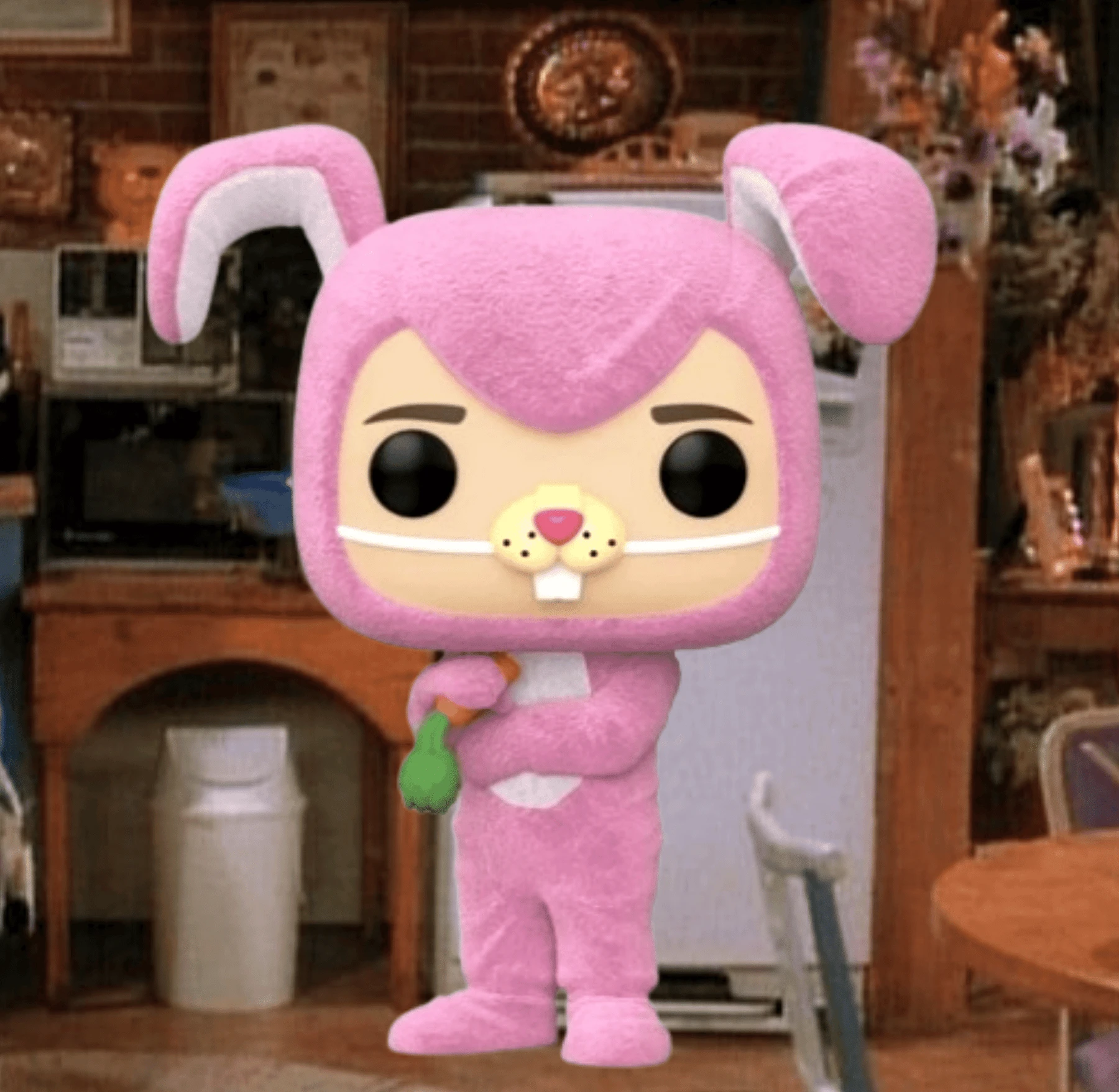 Here is Chandler Bing wearing his hilarious pink bunny costume that Monica bought for him in The One with the Halloween Party. To make it even better, it even comes with a realistic fur-like Flocked finish.