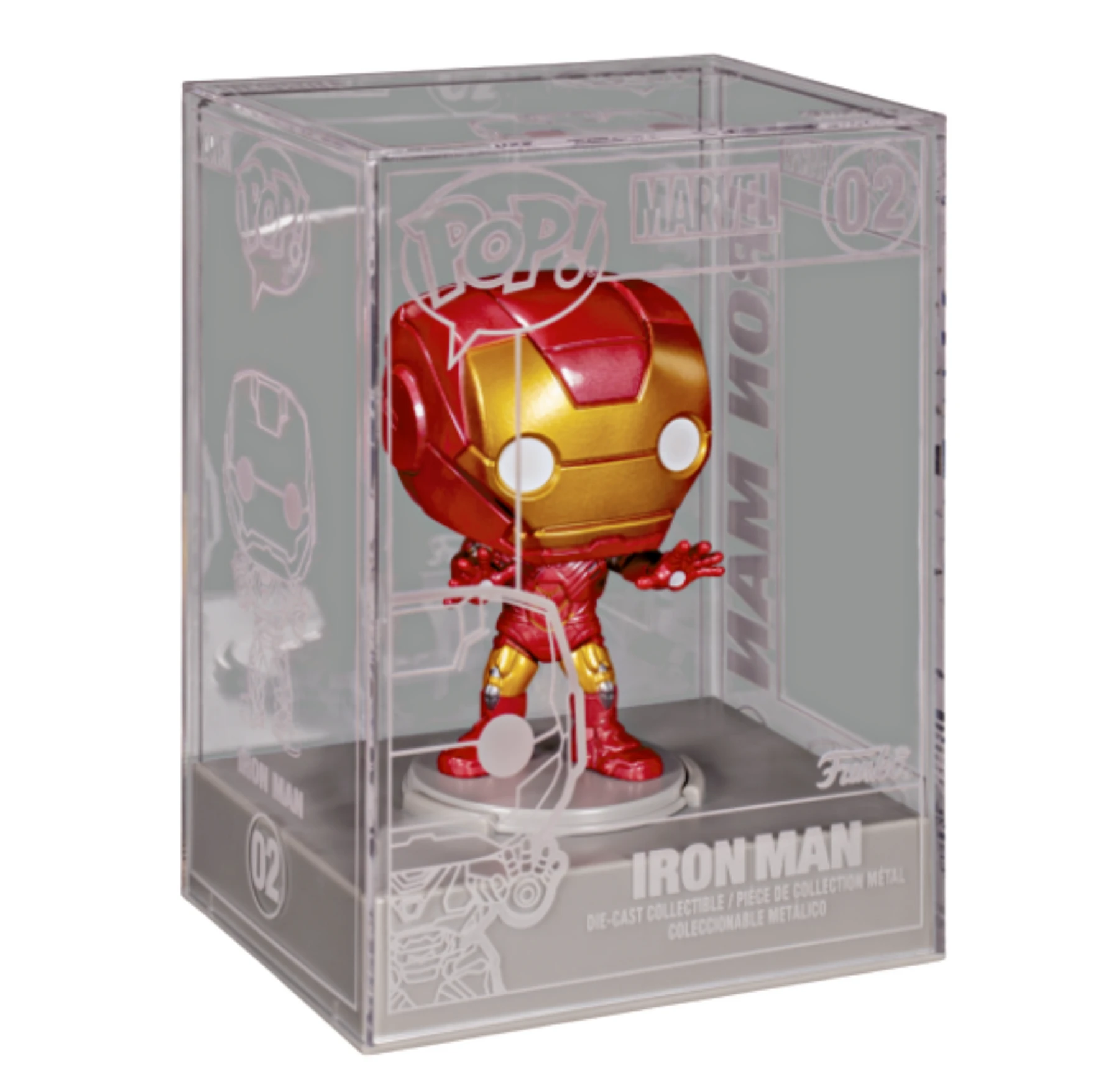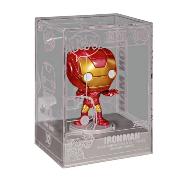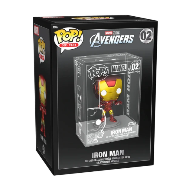 Behold! The new premiere Pop! figure, designed to be the front and center, top-shelf collectible, the Die-cast Pop! series. These figures come in die-cast acrylic cases featuring etched details and fasten to the base of the case. The case can be opened, and the figure detached from the base, but with a clear view of all sides of your collectible, you won’t need to unbox it to see all the details. These collectibles come in a telescoping box that features foil details and a foam inner linings to further protect the collectible while in transit. Continue your Die-cast Pop! collection with Marvel’s Pop! Iron Man. Bring home the classic hero Iron Man, aka Tony Stark, as a Die-cast Pop! to crown your Marvel lineup.