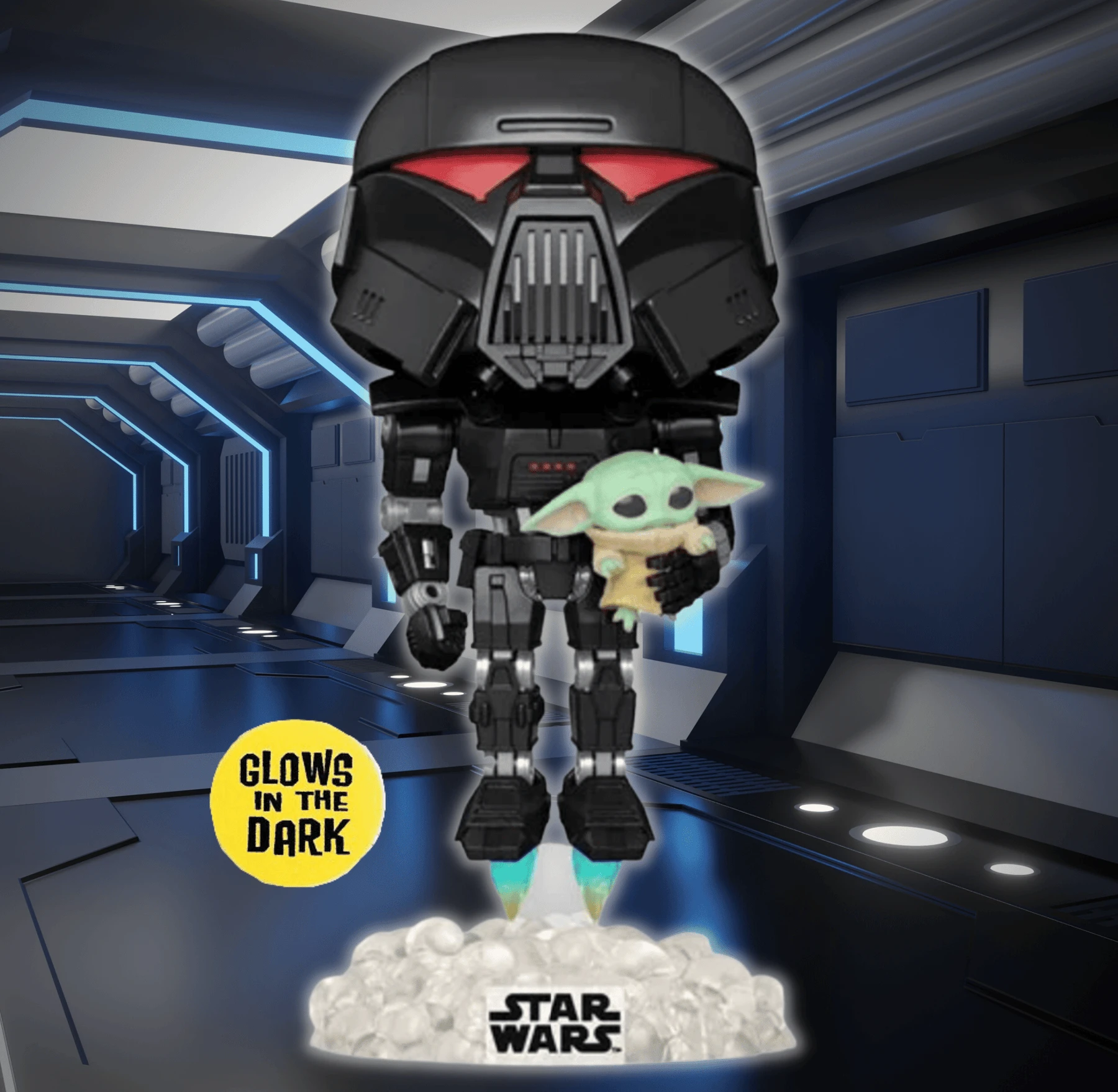 Star Wars: The Mandalorian Funko Pop! Dark Trooper (with Grogu) (GITD) #488